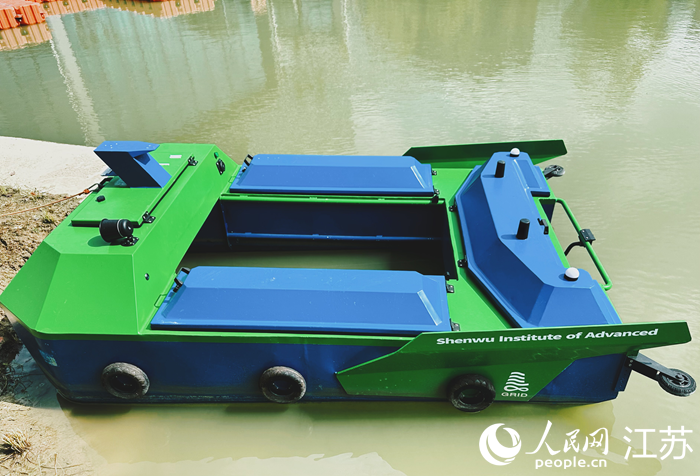 來到耕瀆河畔,水體清澈,寒風陣陣。水面上,一艘無人清潔船自主作業。這裡曾因工程截流,水體氨氮超標,傳統人工下潛勘測難度較大。