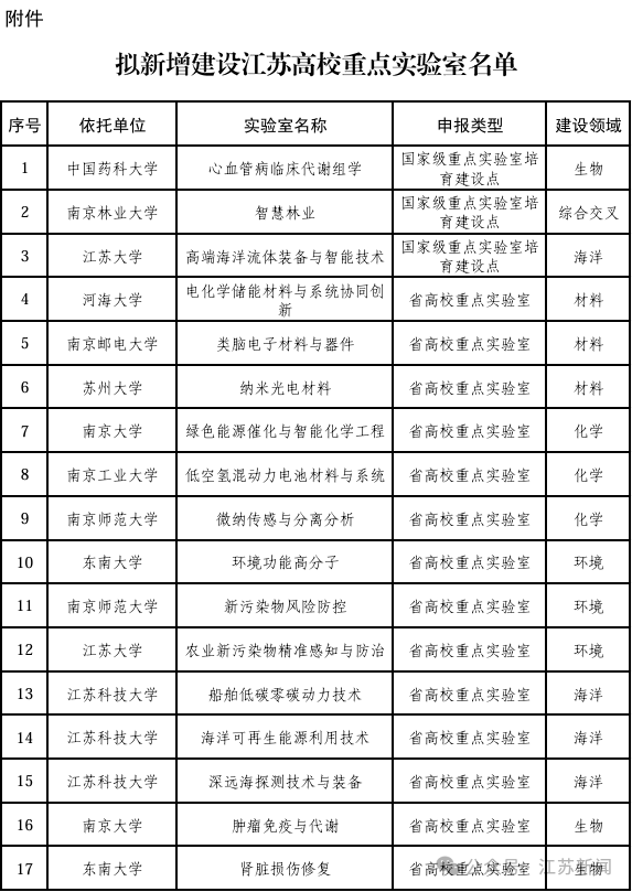 9月18日,江苏省教育厅就江苏高校重点实验室拟新增建设名单发布公示。