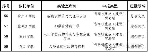 江苏高校重点实验室拟新增建设名单公示
