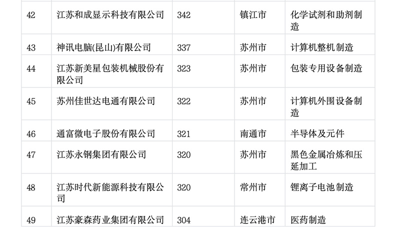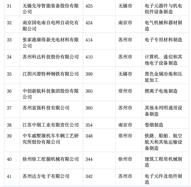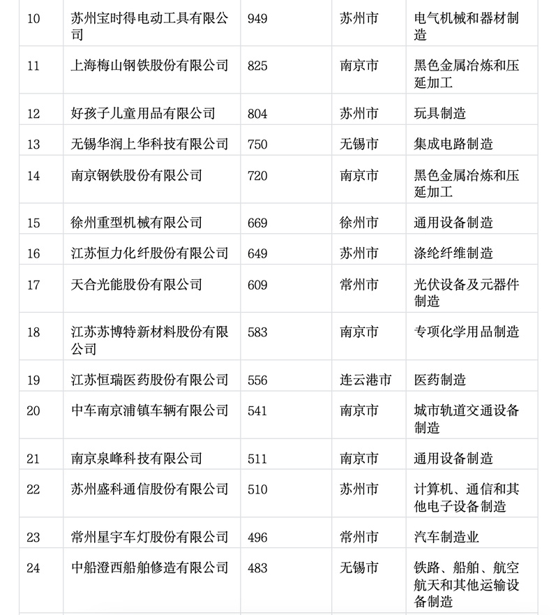 2025年江苏制造业企业专利百强榜出炉